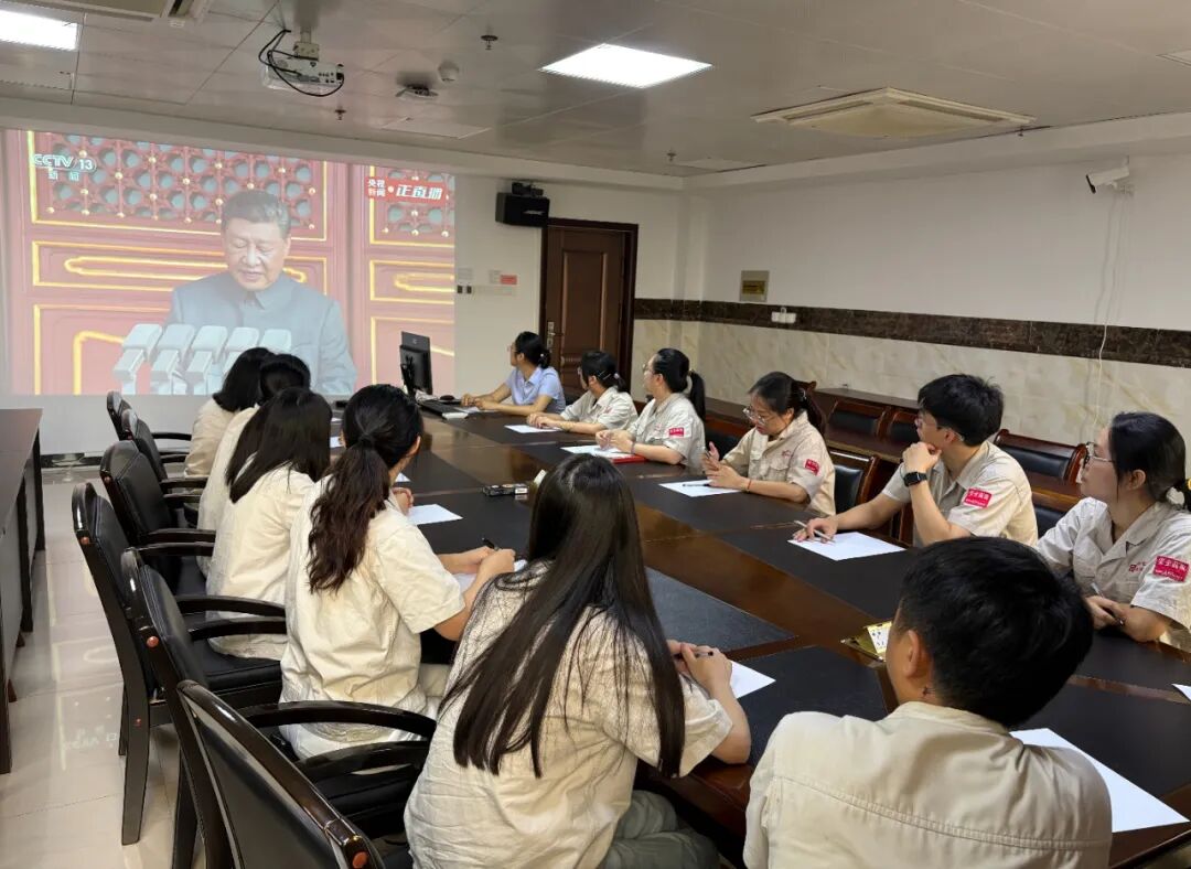 當(dāng)國(guó)歌奏響、五星紅旗冉冉升起時(shí),觀看員工的目光緊隨大屏幕中受閱方陣的鏗鏘步伐。從陸??杖娐?lián)合方陣的整齊劃一,到新型導(dǎo)彈、無(wú)人機(jī)、智能作戰(zhàn)平臺(tái)的震撼亮相,每一幀畫(huà)面都引發(fā)現(xiàn)場(chǎng)熱烈掌聲。